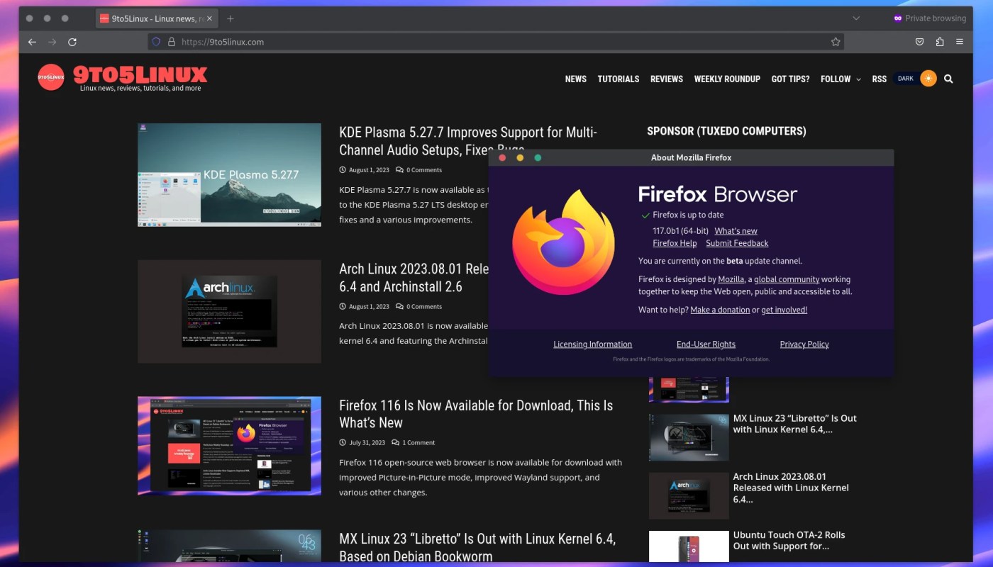 Mozilla berencana untuk merilis versi stabil Firefox 117 pada 29 Agustus 2023. Sampai saat itu, Anda dapat menggunakan versi beta terbaru untuk test drive untuk menemukan perubahan baru dengan mengunduh binari dari situs web resmi.