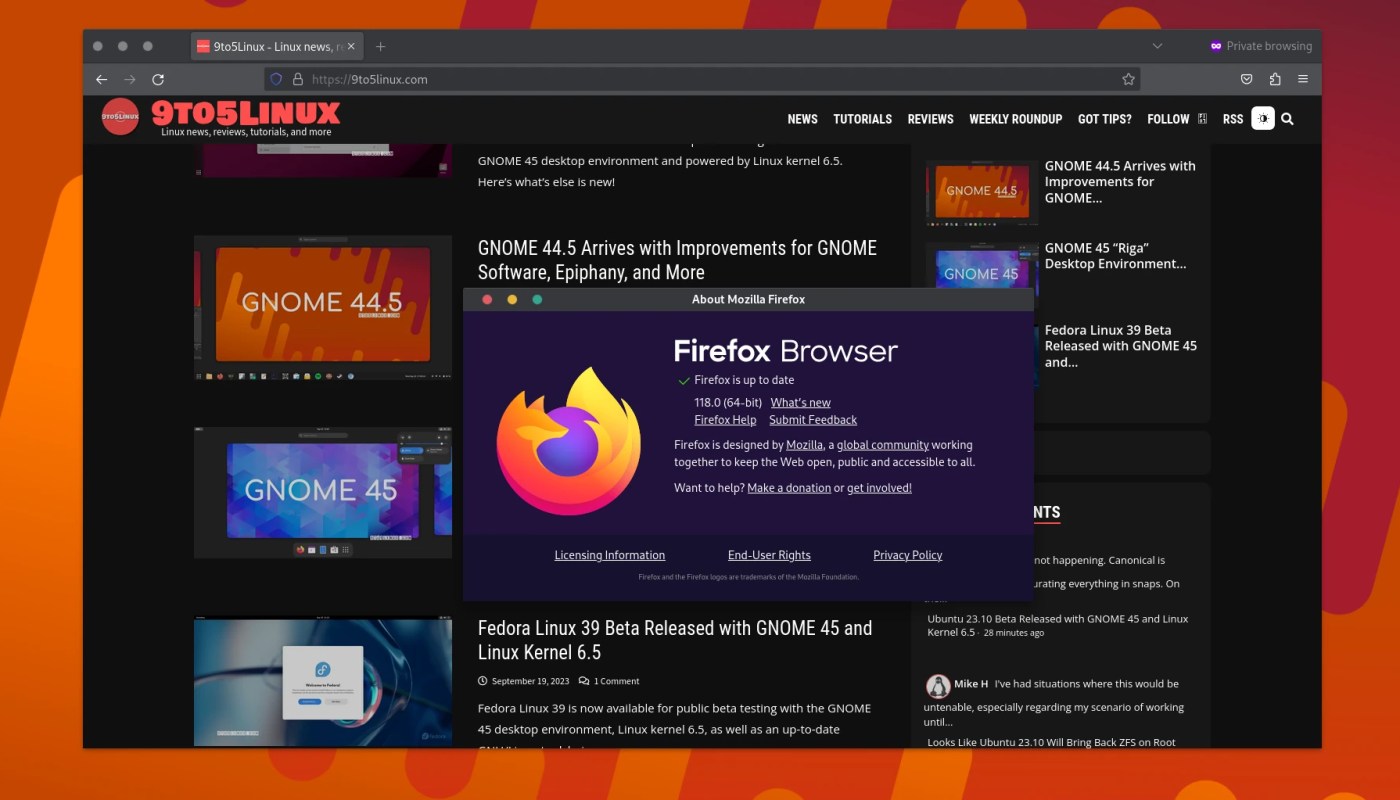 Seperti disebutkan sebelumnya, Mozilla akan secara resmi mengumumkan Firefox 118 besok, 26 September 2023. Hingga saat itu, Anda dapat mengunduh rilis finalnya sekarang juga dari server unduhan resmi atau dari repositori perangkat lunak stabil untuk GNU/Linux favorit Anda distribusi.