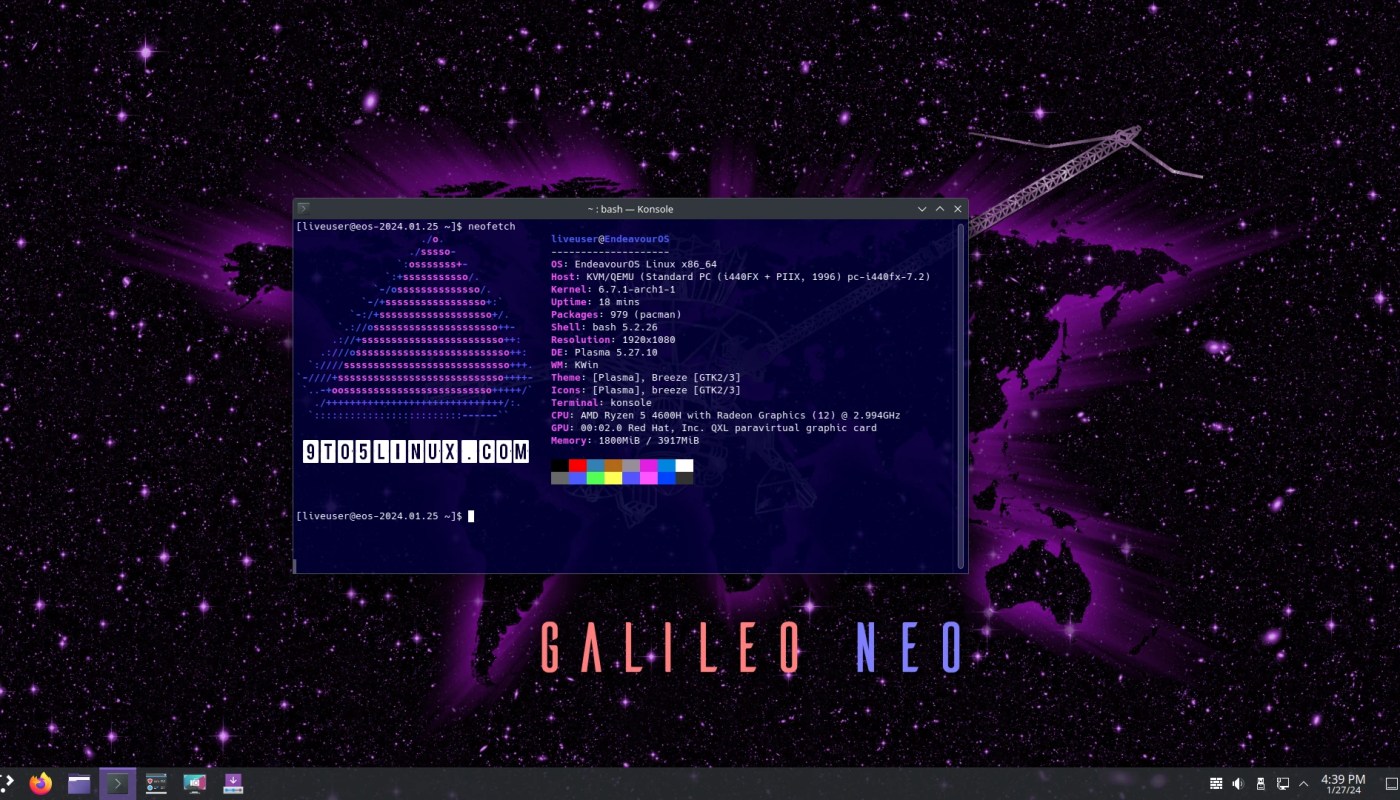 EndeavourOS Galileo Neo hadir sekitar dua bulan setelah EndeavourOS Galileo menyediakan pengguna yang ingin menginstal EndeavourOS pada komputer baru dengan media instalasi terkini yang didukung oleh seri kernel Linux 6.7 terbaru dan terhebat serta tumpukan grafis Mesa 23.3.3.