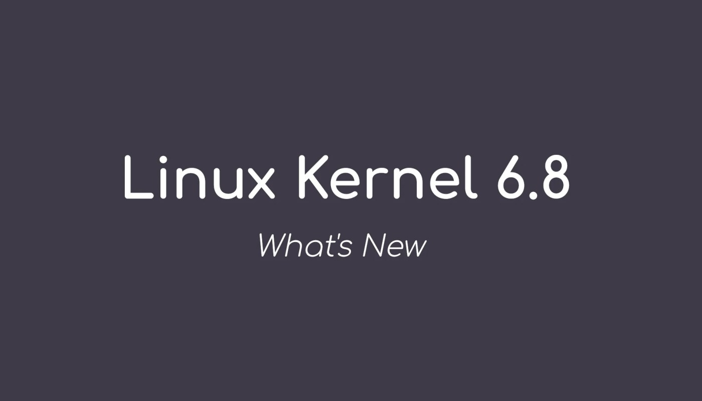 Sorotan dari kernel Linux 6.8 termasuk virtualisasi LAM (Linear Address Masking) dan dukungan memori pertama tamu untuk KVM, mekanisme pemeriksaan dan perbaikan sistem file online dasar untuk sistem file Bcachefs yang diperkenalkan di kernel Linux 6.7, dukungan untuk prosesor Broadcom BCM2712 di Raspberry Pi 5, fitur mitigasi RFI band Wi-Fi berbasis AMD ACPI (WBRF), penonaktifan penulisan balik zswap , dukungan fscrypt untuk CephFS, driver Intel Xe DRM baru, dan antarmuka sysfs THP (Transparent Huge Pages) multi-ukuran.