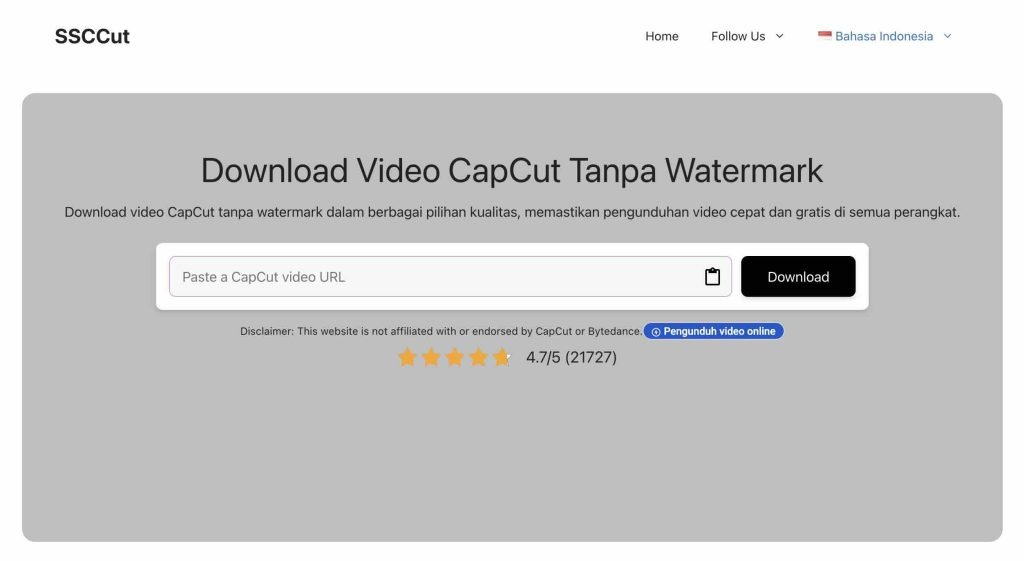 - Akses Situs SSS CapCut: Buka peramban favorit kalian (bisa Chrome, Safari, atau lainnya), lalu masuk ke situs penyedia layanan SSS CapCut yang ada di mesin pencari.