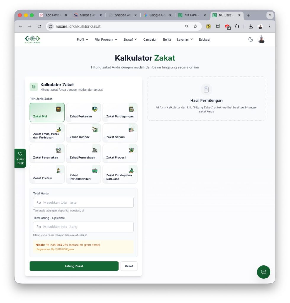 - Kalkulator Zakat LazisNU: https://www.nucare.id/kalkulator-zakat